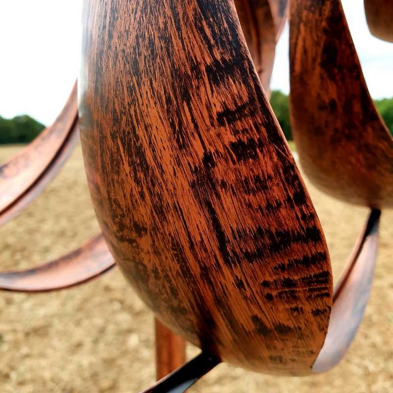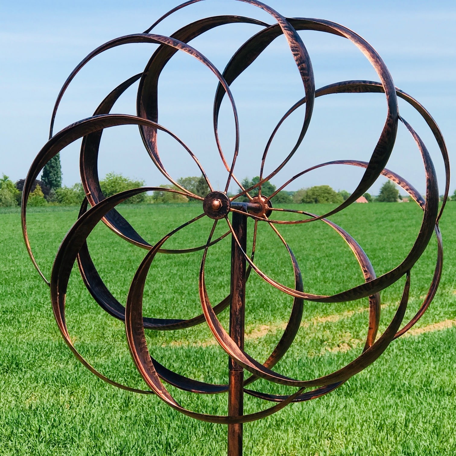 Für Langlebigkeit entworfen, ist diese hochwertige dekorative Gartenwindmühle aus robustem Metall gefertigt und mit einer kupferpatinierten Beschichtung versehen, die einen natürlichen Schutz gegen äußere Einflüsse bietet.